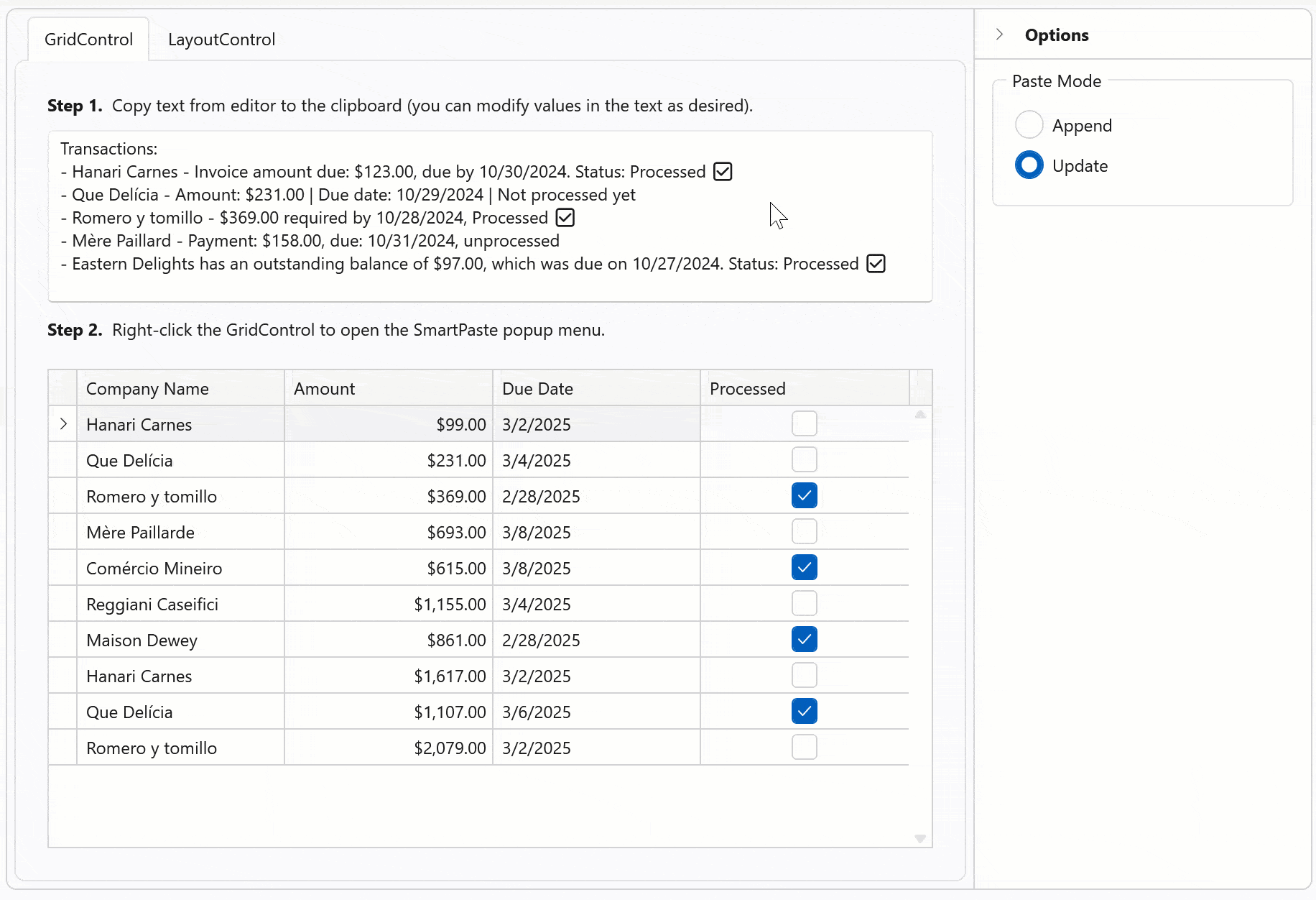 - AI-powered Smart Paste within our VCL Data Grid and Layout control. SmartPaste analyzes content and intelligently assigns correct values to appropriate layout fields or row cells (to transform traditional copy-and-paste operations).